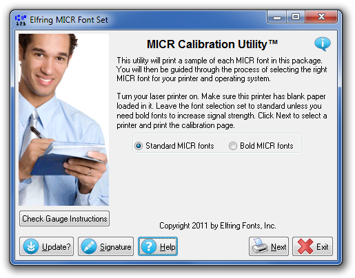 Print MICR / E13-B encoding on your checks with any laser printer using Windows TrueType or PostScript fonts. The bottom sequence of numbers on a check must be printed in a special font called MICR or E-13B. This font includes the numbers 0 through 9 and four special characters: On-Us, Transit, Amount, and Dash.MICR printing can be done on any laser printer, provided you purchase a special magnetic toner cartridges for it. Note that MICR printing must be exceedingly accurate. This package includes a number of variations of the MICR font (E-13B), plus instructions and calibration routines to ensure the checks you print will work at your bank. All fonts are designed to meet ANSI standard X9.100-160-1-2009, X9.27-1995, and the Canadian CPA 006 standards. The calibration program also includes MICR Check Position Guage support.When printing checks, you also need a secure way way to print the amount and name of the person the check is payable to. This package also includes eight different Secure Fonts. They let you print payee names and check amounts in dollars, pounds sterling, euros, or the yen that are very hard to alter.All fonts come in Windows TrueType and PostScript formats. Note: Optio software users need our LaserJet PCL version, not the TrueType version.
