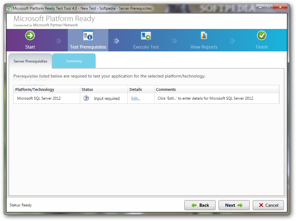 You can download Microsoft Platform Ready Test Tool which is 18.67 MB in size and belongs to the software category Servers. Microsoft Platform Ready Test Tool was released on 2013-03-30 and last updated on our database on 2017-03-08 and is currently at version 4.1.