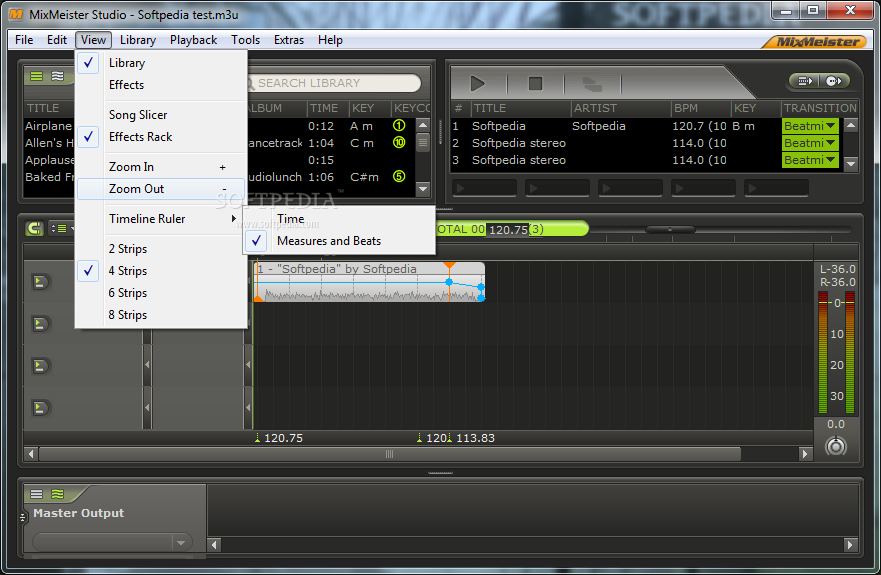 You can download MixMeister Studio which is 58.4 MB in size and belongs to the software category Audio. MixMeister Studio was released on 2009-11-27 and last updated on our database on 2017-02-25 and is currently at version 7.4.