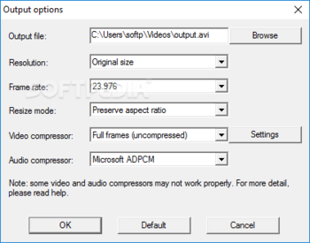 Encode AVI with DIVX, XVID, Windows Media Audio and Video Codec, DV Video Encoder, etc.