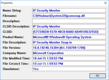 As soon as the data has been loaded, MMCSnapInsView shows many details about the snap-ins, such as the full path and filename, CLSID, file description and version. You can also view the company name and the created and modified dates, as well as the description for those that feature it.