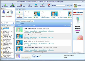 Mobiano Ringtone Box for PPC is a free utility to set contact personal ringtone at your desktop computer. It provides thousands of ringtones in our website. When you applying to device with one click, it will download the ringtone (in midi, mp3 or wav format) file from internet or your computer and assign it to the contact you selected in your Pocket PC (PPC). You can also manage music/voice/songs as ringtone in either your desktop pc or Pocket PC.