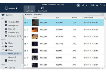 With it, you can: Transfer up to 10 types of files from iPhone, iPad and iPod to computer with few simple clicks, including video, photo, song, eBook, voice memo, podcast, ringtone, playlist. Manage or control the transferred iOS contents on the local hard disk without any limitation, you can delete, remove, or add any file on your computer as you like. Thumbnail view: The catalog in your iDevice will be displayed as a table of thumbnail images in adjustable sizes. So that you can browse your desired files more intuitive. List View: Files under this mode will be shown with its detailed information, including name, file size, type, time. Run smoothly with multiple iOS devices.