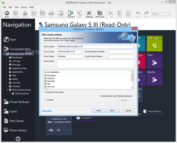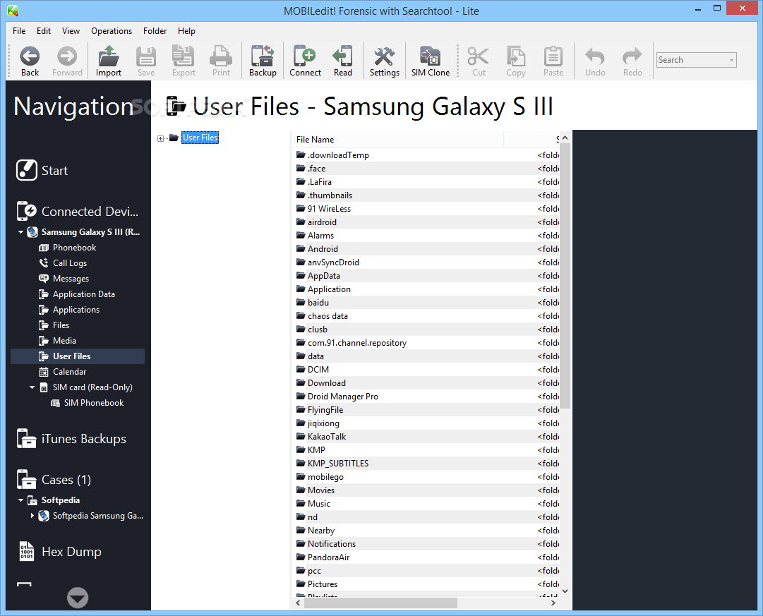 Therefore, this program can also be used as a phone backup solution for conversations, contacts, app data, files, calendar entries, and media files. Aside from reading data directly from the phone, MOBILedit! Forensic with Searchtool Lite can also extract information from existing iTunes backups.