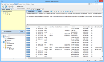 Created XML files can be imported to the Forensic Search Tool to build an indexed database where future searches can be conducted. This secondary application can work with complex search queries to look for conversations, messages, calls, created files, or any other activity traces within terabytes of phone data from various devices.