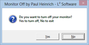 Monitor Off is a free software by L2 ADVanced and works on Windows 10, Windows 8.1, Windows 8, Windows 7, Windows XP, Windows 2000, Windows 2003, Windows 2008, Windows Vista, Windows 2012.