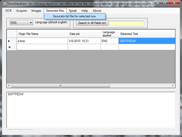 The program allows you to save the extracted text into a text file with a click