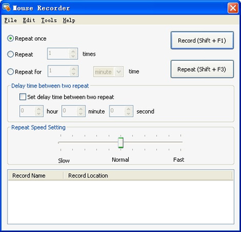 Mouse Recorder support setting repeat times and the delay between two repeating, support setting repeat speed, and comes with a mouse click tool.