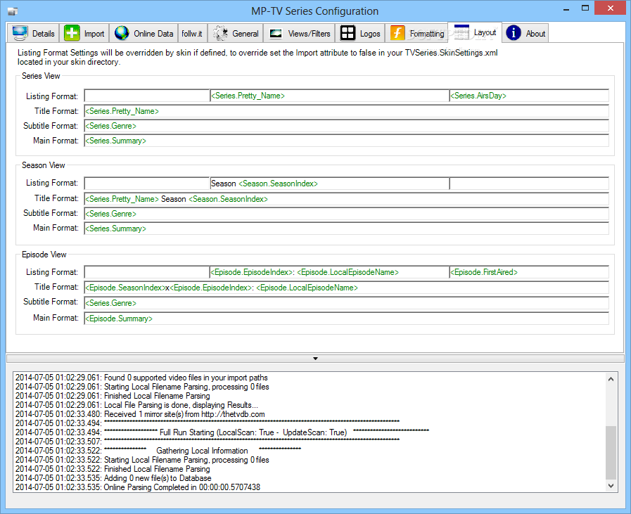 The purpose of MP-TVSeries is to enable you to create a comprehensive episodes library, where you can find all the series you wish to watch. It can scan your computer for video files, read the tags and if it identifies them as episodes, it adds the clips to the video gallery. MP-TVSeries can analyze the computer’s drives, including removable memory devices.