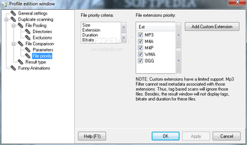 Mp3 Filter is designed to find duplicates in your music collection, wherever your collection is: Hard drives, Multiple Mp3 CDs, anything. The file comparison process, which basically compare filename's words between them, is completely customizable.