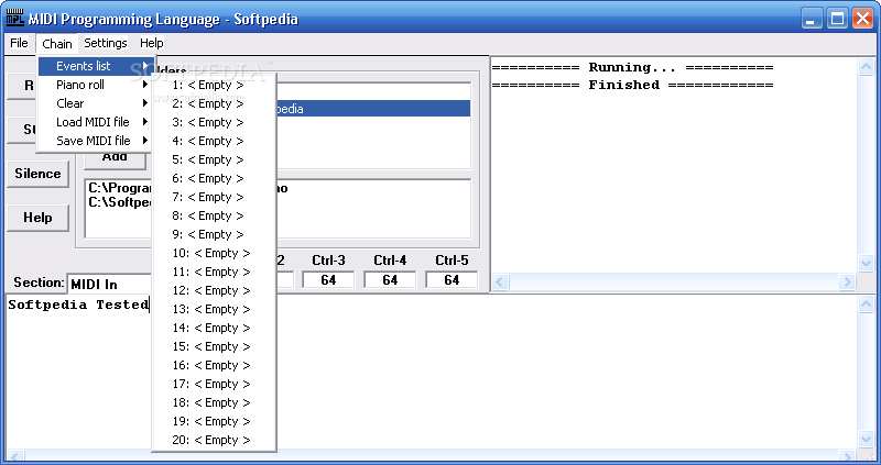 MPL is a tool to make changes to MIDI files in batch and to process (send and receive) MIDI messages in real time. You can use it to automate your MIDI file editing work. Or build your own real time MIDI tools, like sequencers or arpeggiators.