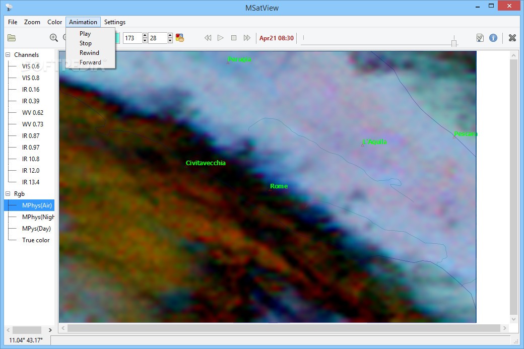 MSatView is a useful program designed to help you visualize and analyze meteorological satellite images. It can process data obtained from Meteosat Second Generation (MSG3 and Meteosat 10) geostationary meteorological satellites.