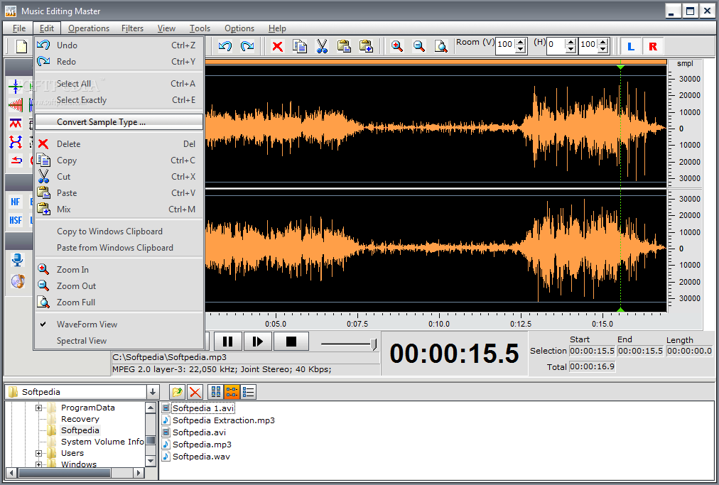 Edit audio nondestructively for quick and easy changes with unlimited undo/redo (Cut, Copy, Delete ,Delete Silence, Paste, Paste From File, Mix, Mix From File)