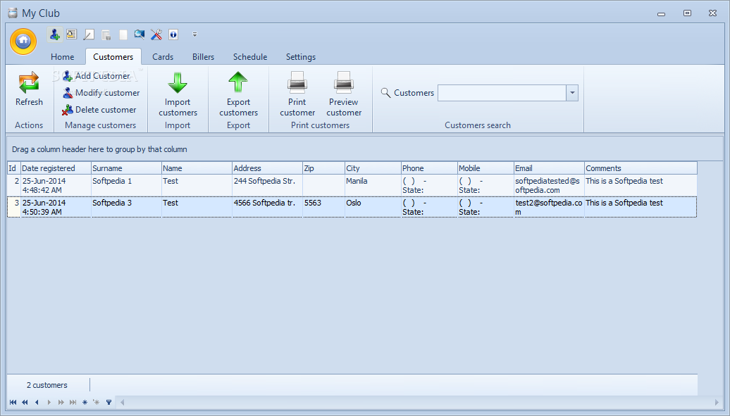 My Club enables you to create or open an existing database of clients, contact details and invoices. You may easily add, edit or remove customer information from the dedicated tab, by selecting the desired entry. Additionally, you may add new customers when creating a card or an invoice.