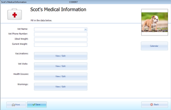 My Pet Record is a demo software by Coderit and works on Windows 10, Windows 8.1, Windows 8, Windows 7, Windows XP, Windows 2000, Windows 2003, Windows 2008, Windows Vista, Windows 2012.