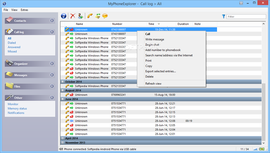 MyPhoneExplorer is a free software by FJ Software and works on Windows 10, Windows 8.1, Windows 8, Windows 7, Windows XP, Windows 2000, Windows 2003, Windows 2008, Windows Vista, Windows 2012.