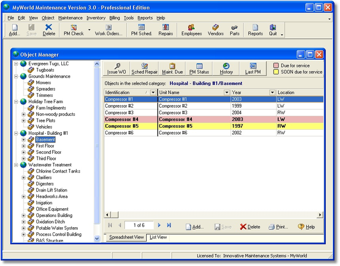 MyWorld Maintenance is a flexible maintenance software system that will help you keep track of preventive and repair maintenance on any type of object. It is flexible enough to track anything from facility maintenance to copy machines and just about anything else you can imagine hence the term "MyWorld Maintenance". MyWorld Maintenance lets you keep track of an unlimited number of objects that can be organized into categories. You can track detailed information specific to an object using the numerous user-defined fields provided for each object.