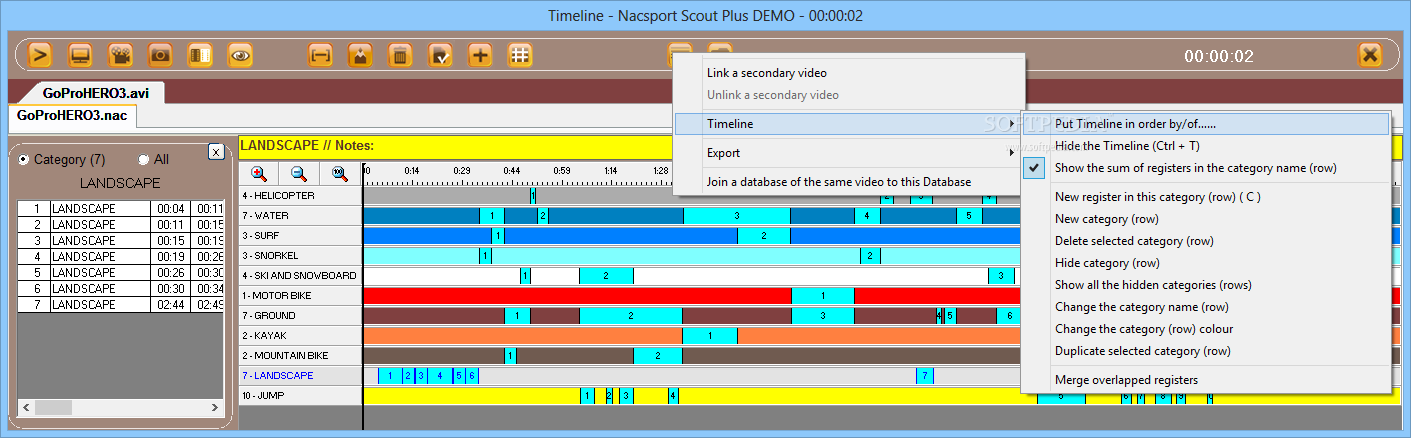 Thus, you can create a presentation containing both video and explanatory notes. The software enables you to generate a data matrix, containing registers from different games, or load more videos to the same timeline and compare the performances.