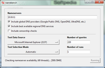 You can download namebench which is 5.23 MB in size and belongs to the software category Other Internet Related. namebench was released on 2010-06-09 and last updated on our database on 2017-02-27 and is currently at version 1.3.