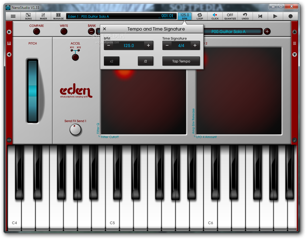 Through a nice looking interface, this program brings loads of tools and features that can make the whole composition process more easier. You can start by recording samples played on the virtual keyboard which can be uses later in your projects.