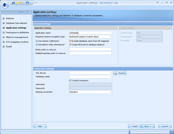 NConstruct Lite is a powerful wizard-like tool for creating applications data layer source code for NHibernate object/relational persistence and query framework. NConstruct Lite examines databases metadata and creates NHibernate HBM files, entities source code, Microsoft Visual Studio project file, but you can use it to create various optional helper files.