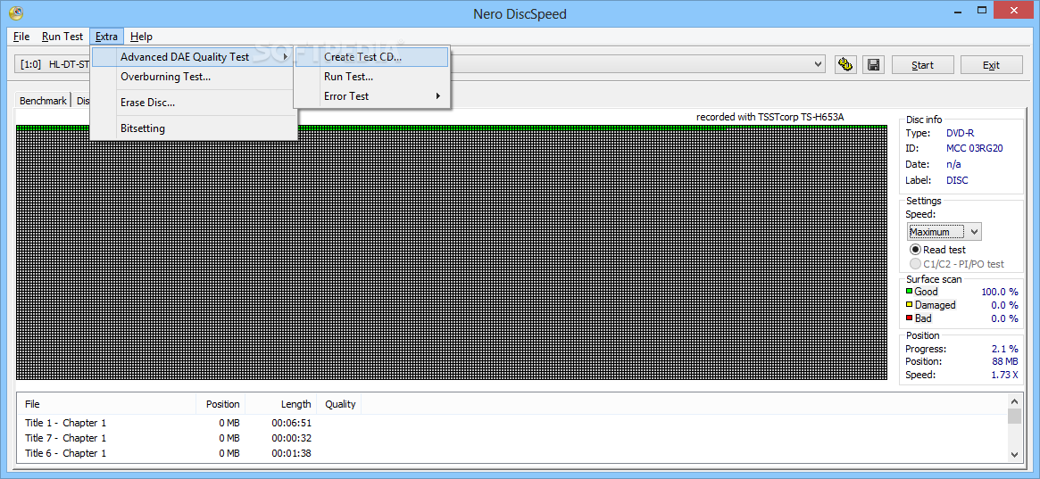 Industry standard benchmarking tool for CD, DVD, and BD drives