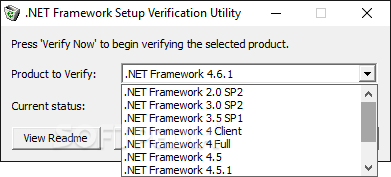 You can download .NET Framework Setup Verification Utility which is 244.96 KB in size and belongs to the software category System Info. .NET Framework Setup Verification Utility was released on 2016-10-24 and last updated on our database on 2017-04-16 and is currently at version 26.