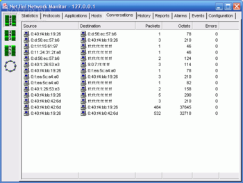 ï¿ Traffic matrix and chart (shows traffic between stations/hosts)