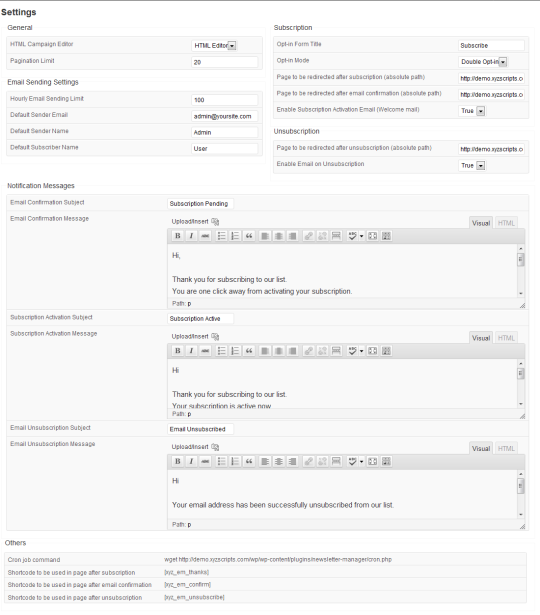 Newsletter manager is a simple WordPress plugin that allows you to create and send HTML or plain text email newsletters to your subscribers. The plugin supports unlimited email campaigns, unlimited email addresses, double opt-in anti-spam compliance, and hourly email sending limit.