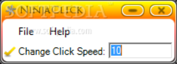 Just change the text from 10 to any other number, and click the check mark, and the clicking time will change (NOTE: The smaller the number the faster the clicks) You can go to File/Start to start the app, or press F1, and F2 to stop.