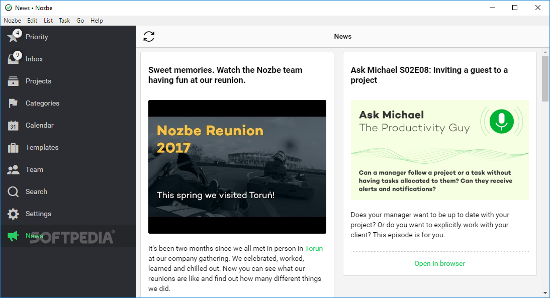 You can download Nozbe which is 30.49 MB in size and belongs to the software category Other Internet Related. Nozbe was released on 2017-05-31 and last updated on our database on 2017-05-31 and is currently at version 3.5.
