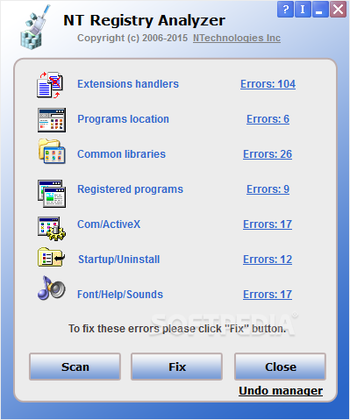 Installing this application should take minimal time and effort, since it bundles familiar options. Its interface looks outdated, though. Based on a small window, NT Registry Analyzer shows all registry locations that it scans, namely extension handlers, the programs location, common libraries, registered apps, COM and ActiveX objects, startup and uninstall section, along with the font, help and sounds area.
