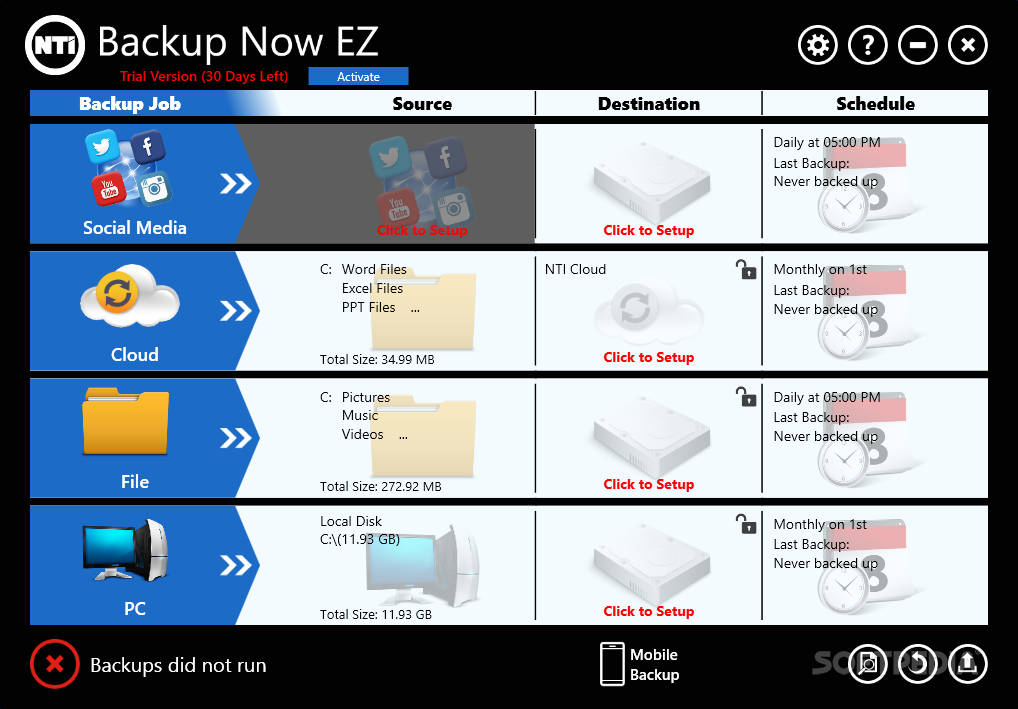 You can download NTI Backup Now EZ which is 140.83 MB in size and belongs to the software category Backup and Recovery. NTI Backup Now EZ was released on 2016-07-07 and last updated on our database on 2017-04-14 and is currently at version 5.