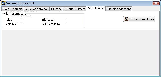 This tab records the history of the played tracks. The selected track info is showed at the info box. The track context menu can be accessed by right clicking a track, from this menu you may play, open in explorer, delete a file or add a bookmark for it. The delete file button and the delete function in the context menu all go to the recycle bin with verification according to your recycle bin configuration, so dont be afraid to use the delete