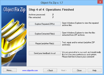 Object FIX ZIP is a free software by Essential Data Tools and works on Windows 10, Windows 8.1, Windows 8, Windows 7, Windows 2012.