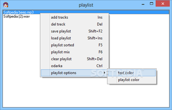 The main window allows you to adjust the playback progression, volume, enable the playlist loop or render the tracks in random order. Moreover, you may easily hide/unhide the playlist, by clicking the dedicated button. The playlist window, however appears and disappears whenever a new track starts playing.
