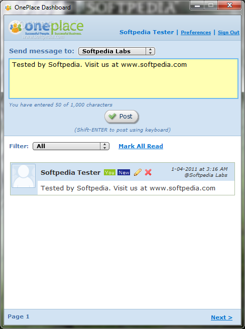 You can download OnePlace Dashboard which is 1.33 MB in size and belongs to the software category Chat. OnePlace Dashboard was released on 2011-01-04 and last updated on our database on 2017-02-28 and is currently at version 1.1.