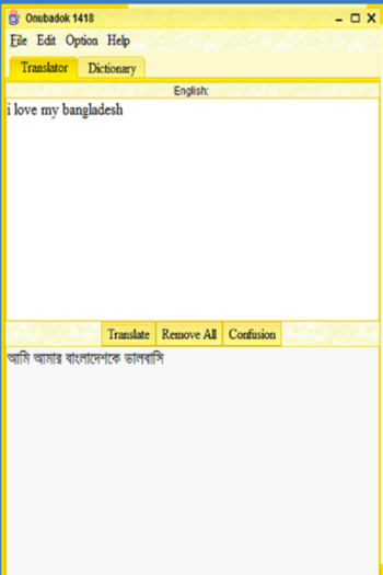 onubadok 1418 is a ts software ( language translation software ). Translate english language to bangla language. Have a nice dictionary. Add word and update feature. Rapid word input feature with confusion button.