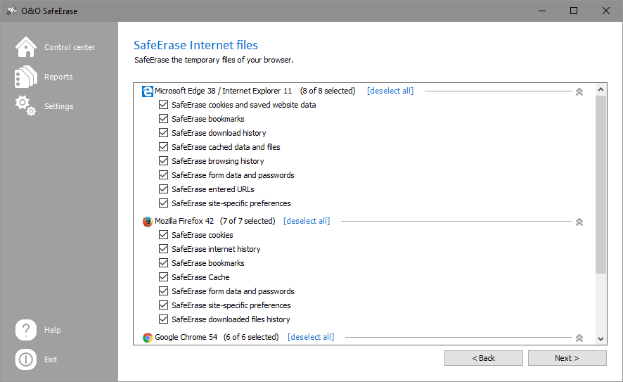 O&O SafeErase is THE solution for the secure deletion of sensitive data and internet tracks like your browser history or your stored cookies from your hard disk and offers you the ultimate protection of your private sphere. With just one click of the mouse you can securely and permanently delete files, folders and partitions as well as your entire computer. The motives for the deletion of files are many. Old e-mail files, internet history, file cache, financial records, company information, and private files ought to be protected from others access. The reality, however, is much to the contrary. O&O SafeErase puts a stop to this by not only deleting files, but by annihilating them with the help of recognized and recommended methods.