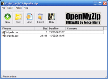 OpenMyZip FREE is a small utility that allows you to archive files and folders.