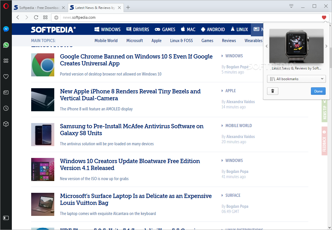 Opera is a free software by Opera Software and works on Windows 10, Windows 8.1, Windows 8, Windows 7, Windows XP, Windows 2000, Windows 2003, Windows 2008, Windows Vista, Windows 2012.