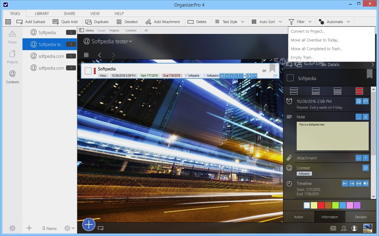 Keeping a to do list around helps you organize every minute of your time, which is a key element to achieving success. Organize:pro is a powerful application that gives you the possibility to do so from the comfort of your desktop.