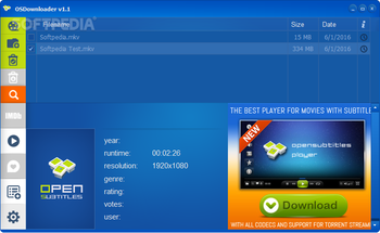 All in all, OSDownloader is a handy utility for those who frequently look for subtitles on OpenSubtitles.org. It can find and save the right captions automatically, while also providing you with an easy way to upload your own files.