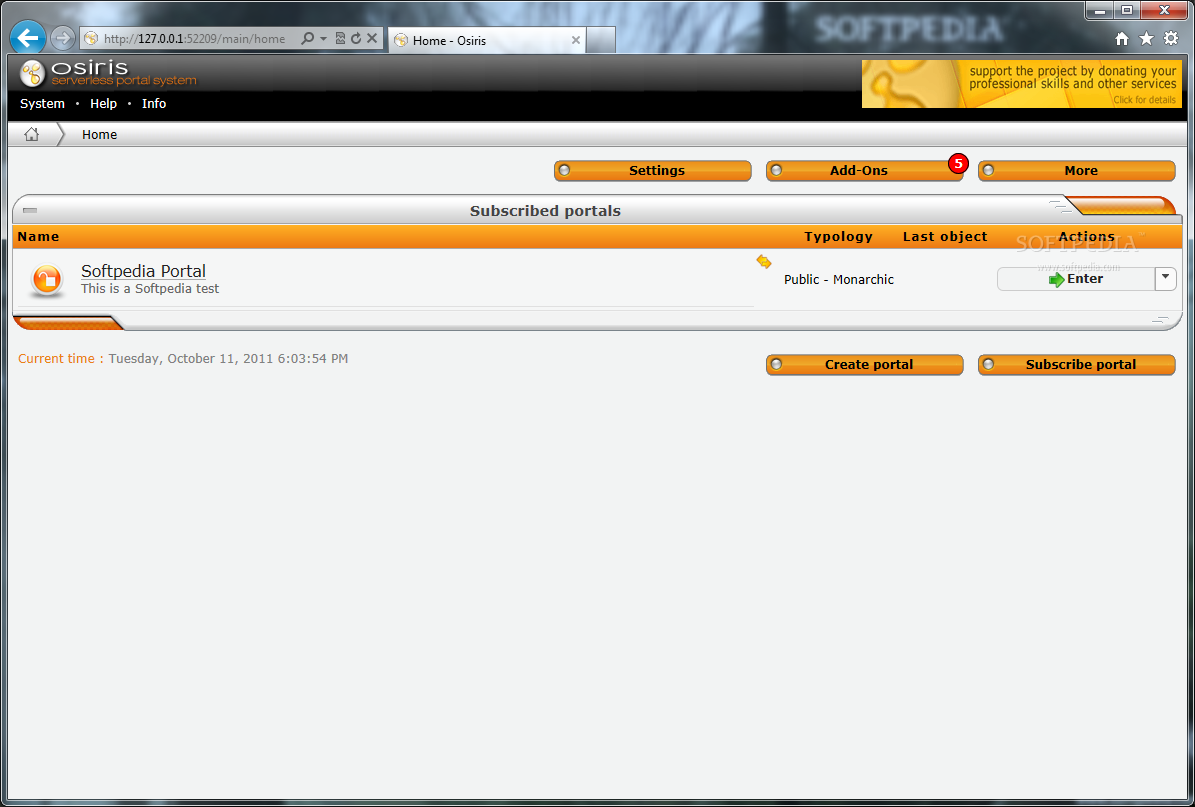 Indestructible: The data of the portals are not saved on a single computer, each member of the portal has a copy of them on his hard disk. The same parts of the portal are saved on many connected units, in order to avoid compromising the integrity of the portal if one of them disconnects. This ensures that a portal built with Osiris will last forever.