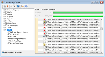 OSPC: Privacy Cleaner allows you to remove the traces of your activities in: