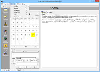 It comes with a built-in calendar that you can use in order to create all sort of events. You simply need to add the event name, choose a start and end time, or add some details. It also has features for creating a diary inside the application and it has a search bar for finding information fast.