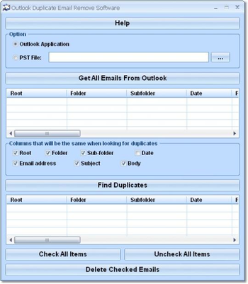 This software offers a solution to users who want to remove duplicate e-mails from Outlook. The software will extract e-mails from the Outlook application or the user can choose a PST file. Check boxes allow choice of the columns of information to be compared before starting the search. The user can check or uncheck the e-mails to be deleted before starting the process.