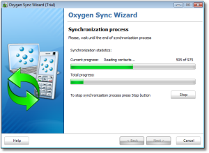 OxySync is designed as a convenient and easy-to-use wizard that will guide you through the whole process of synchronization. It will take just couple of minutes to connect a phone and set up sync parameters. The sync process duration mainly depends on the number of the contacts you have and usually takes only few minutes.