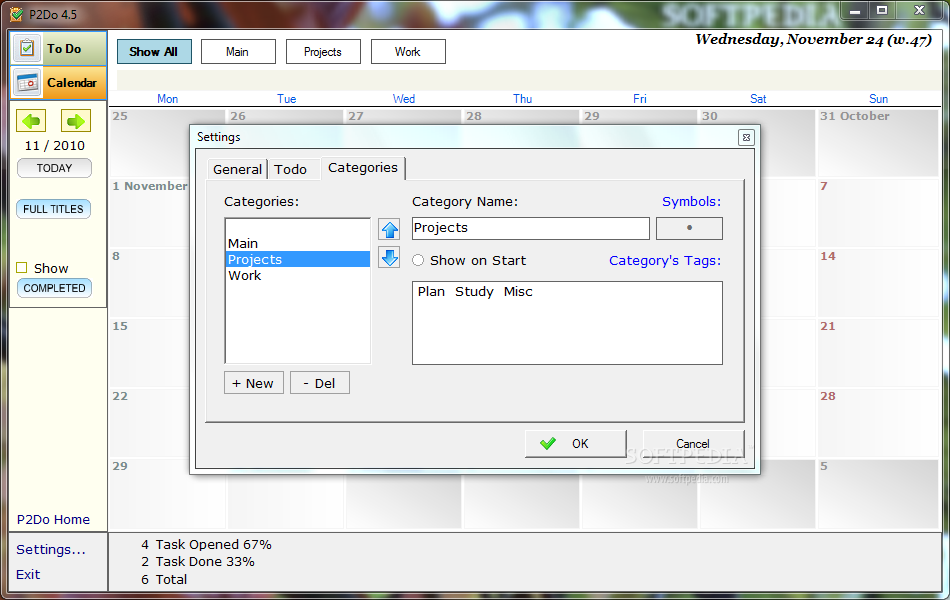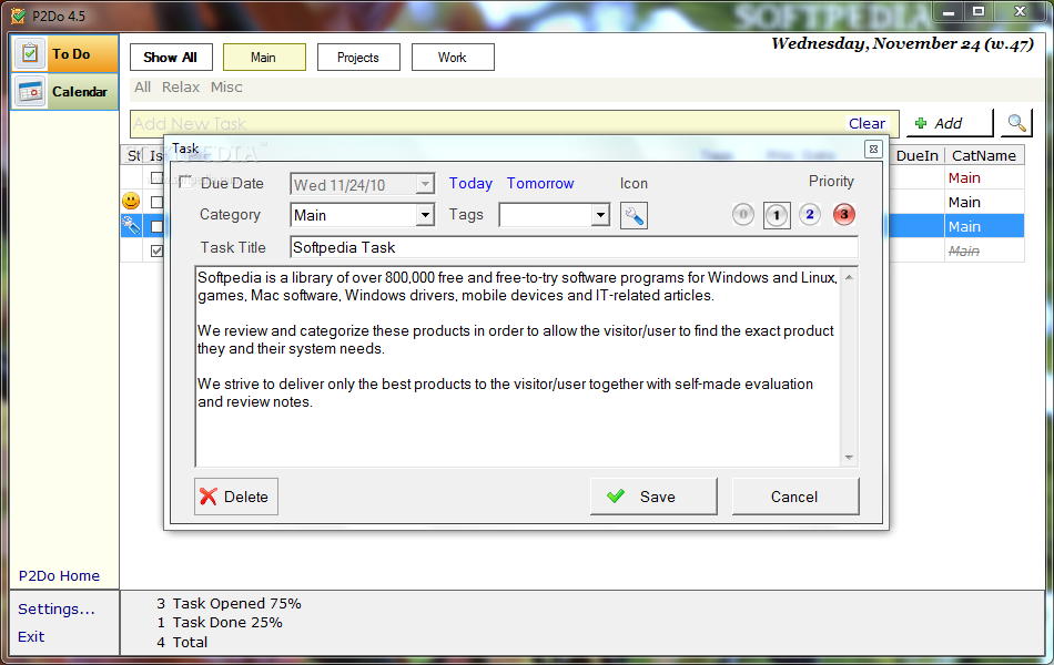 P2Do is a small and extremely useful todo program with its intuitive category & tag system. P2Do will provide users with a calendar, agenda and task management system.