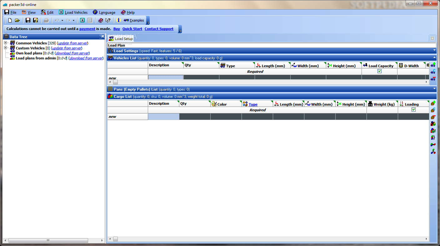 Limitations in the unregistered versionAfter the initial 50 Loading Plan calculations, the number of additional free calculations will be limited to a maximum of five per day (per 24-hour period)